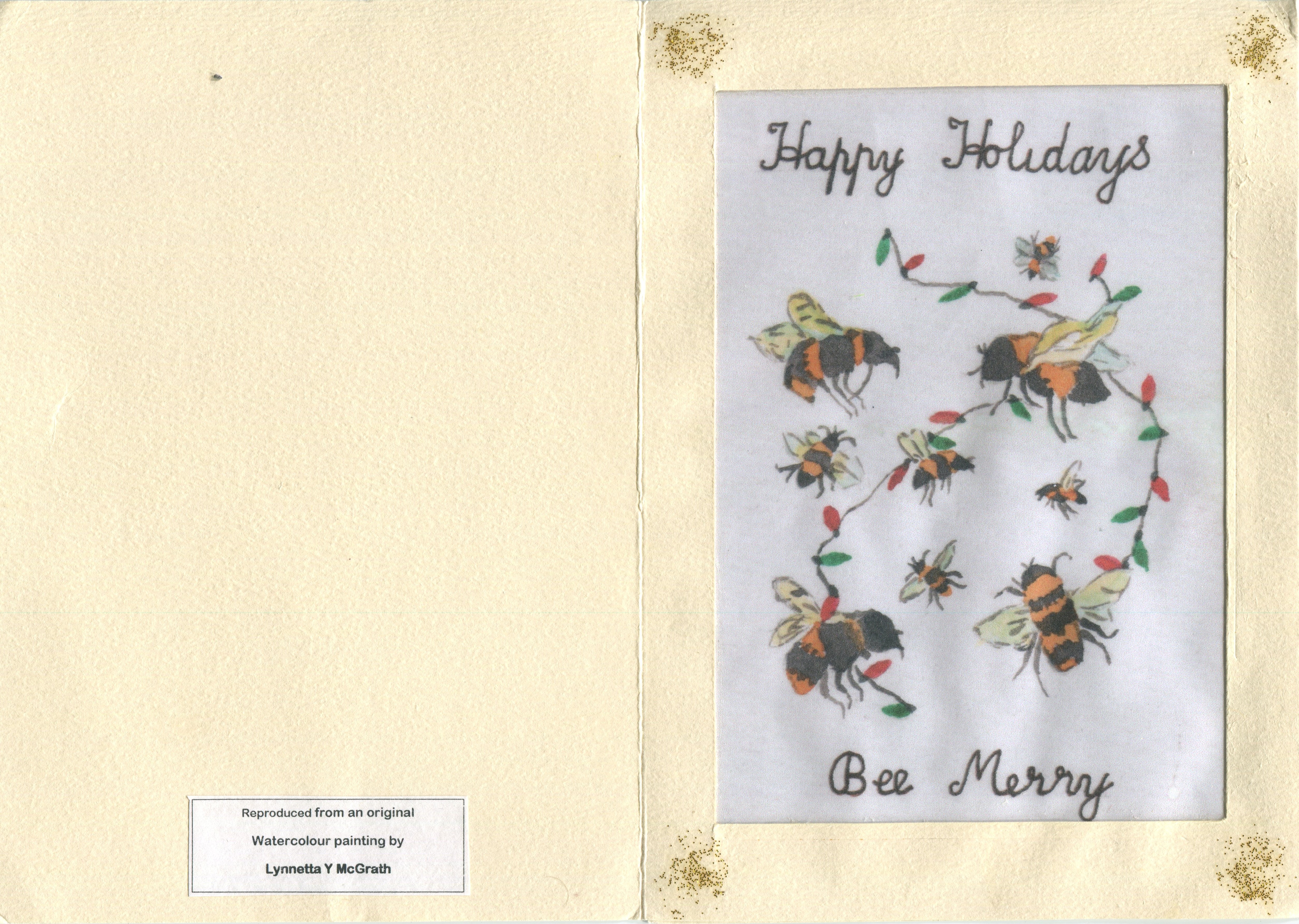 Here is the card she sent me. She often works in miniature, and her cards sell for $5 each. If you would like to see more of her work, please let me know.